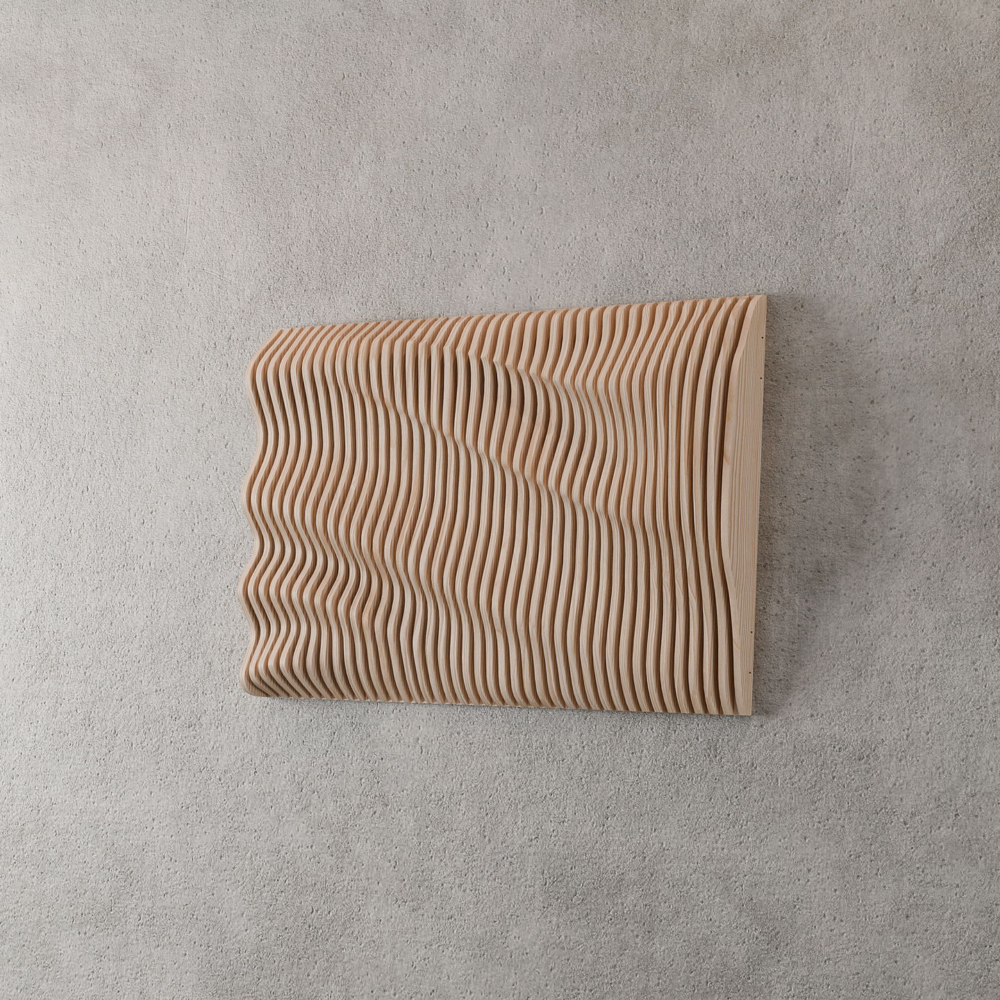 熟練した木型職人が手掛け、波風(namikaze)を題材にデザインしたパラメトリック4Dウォール。